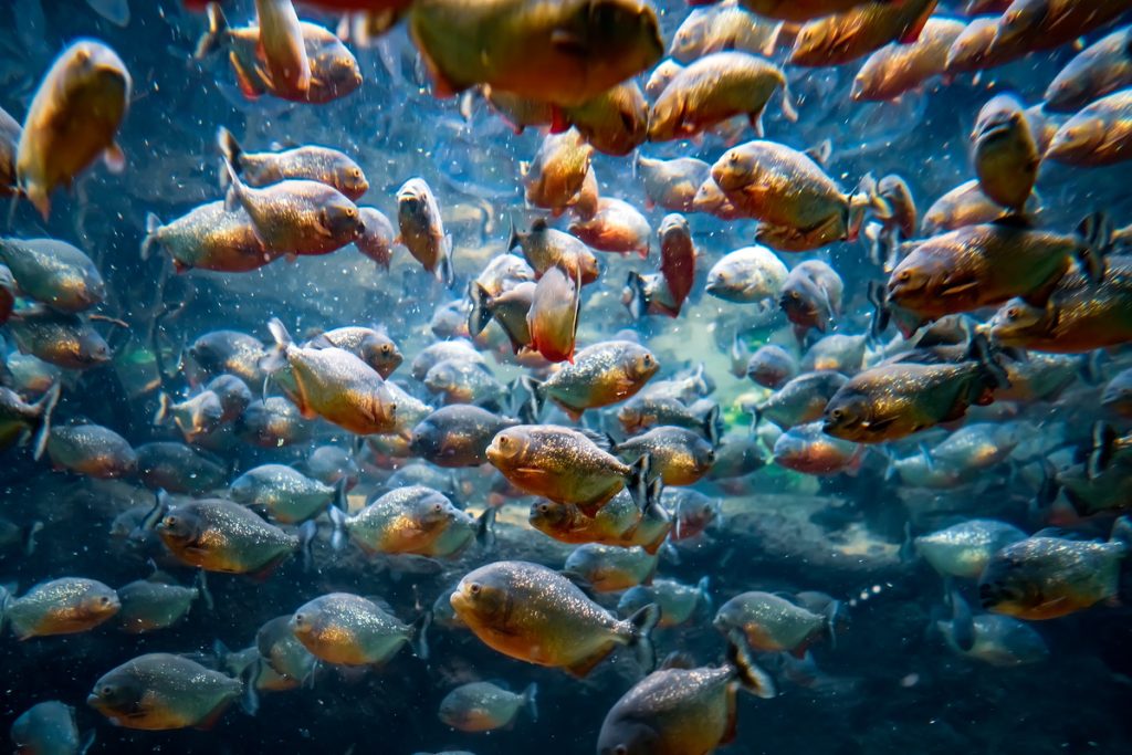 Aunque no suelen representar un riesgo grave para los humanos, los cardúmenes de pirañas son actores clave en la dinámica de los ríos tropicales.